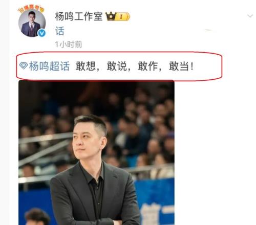 霸氣!楊鳴工作室8字回應CBA爭議吹罰:敢想,敢說,敢做,敢當!有球迷表示:楊鳴太霸氣了,真給力!