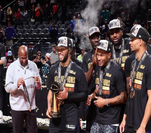杰倫·布倫森舉起了第三屆NBA杯賽MVP獎(jiǎng)杯,他在決賽中轟下25分4籃板8助攻2蓋帽,正負(fù)值為全場(chǎng)最高的+15。這位2018年的二輪秀,在12月17日的NBA杯決賽,率領(lǐng)尼克斯以124比113擊敗馬刺奪冠。
