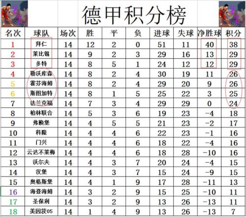 積分榜方面,第14輪戰(zhàn)罷,拜仁領(lǐng)先第2的萊比錫,第3的多特9分,拜仁凈勝球多了27球之多,可以說(shuō)是提前3輪鎖定了半程冠軍。爭(zhēng)4很激烈,斯圖加特今天大勝追上來(lái),只差第4的勒沃庫(kù)森1分。