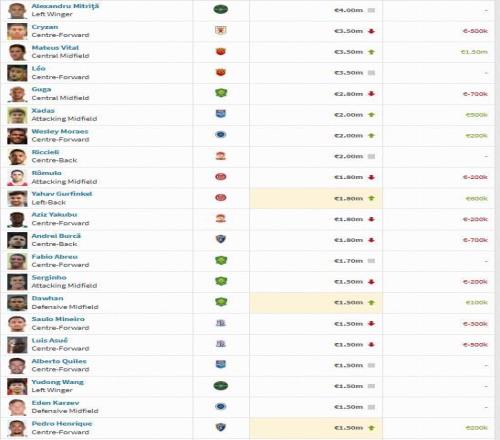 北京時間12月17日,轉會市場網公布了中超聯賽球員的身價,浙江隊在夏窗引進的外援米特里策位居榜首,山東外援克雷桑第二,歸化球員塞爾吉尼奧位居第14位,浙江小將王鈺棟位居第19位。